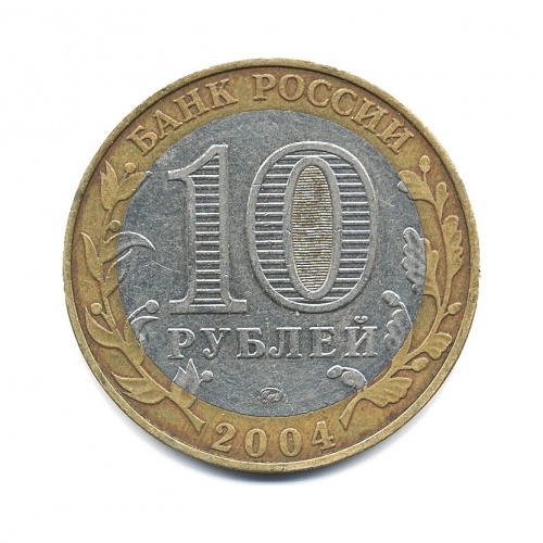 Юбилейная монета «10 рублей 2004 года „Дмитров. Древние города России.“» Российская Федерация (1997 - 2013) (Россия) Би-металл: центр - медно-никелевый сплав, кольцо - латунь