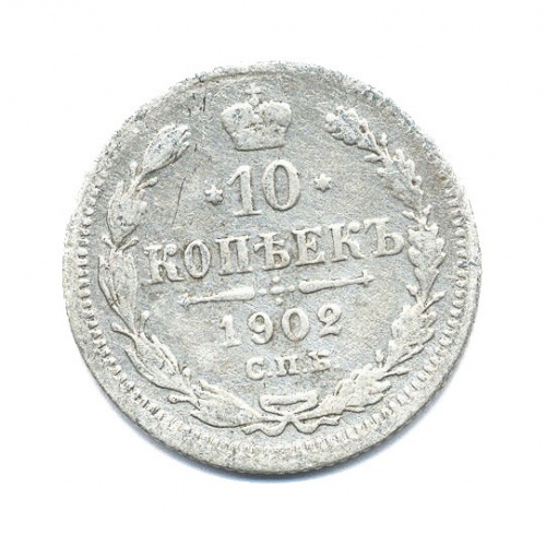Монета регулярного выпуска «10 копеек 1902 года» 1895-1917 (Николай II) (Российская Империя) Монетный двор: Санкт-Петербургский монетный двор, Санкт-Петербург, Минцмейтер: Александр РЕДЬКО Серебро 0.500