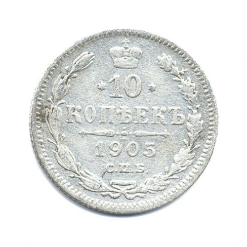 Монета регулярного выпуска «10 копеек 1905 года» 1895-1917 (Николай II) (Российская Империя) Монетный двор: Санкт-Петербургский монетный двор, Санкт-Петербург, Минцмейтер: Александр РЕДЬКО Серебро 0.500
