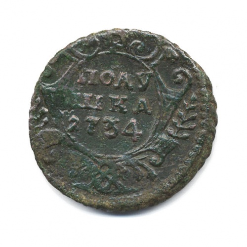 Монета регулярного выпуска «Полушка (1/4 копейки) 1734 года» 1730-1740 (Анна Иоанновна) (Российская Империя) Медь