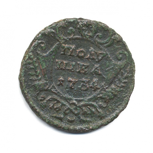 Монета регулярного выпуска «Полушка (1/4 копейки) 1734 года» 1730-1740 (Анна Иоанновна) (Российская Империя) Медь