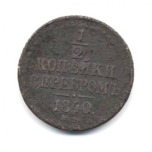Монета регулярного выпуска «1/2 копейки серебром 1840 года» 1825-1855 (Николай I) (Российская Империя) Монетный двор: Екатеринбургская монета, Екатеринбург Медь