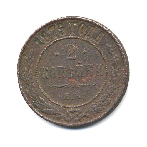 Монета регулярного выпуска «2 копейки 1875 года» 1855-1881 (Александр II) (Российская Империя) Монетный двор: Екатеринбургская монета, Екатеринбург Медь