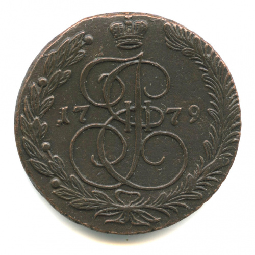 5 копеек — Вензель императрицы Екатерины II Великой. Орел 1780 г. Екатеринбург 1779 ЕМ. Орел образца предыдущих лет. Редкая монета. Очень редкая в под…