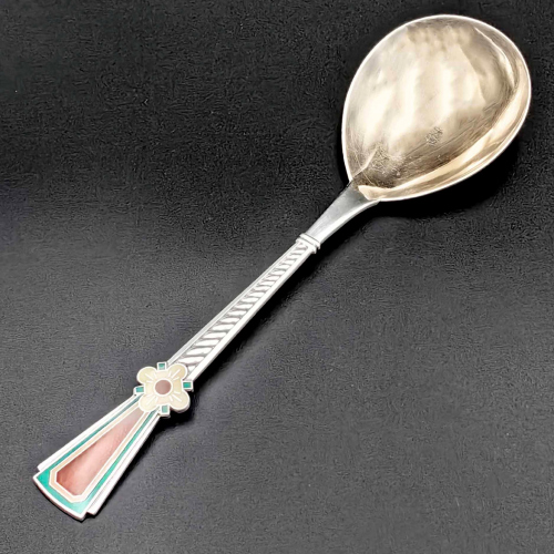 Ложка столовая. Клейма — ТФ9 916 звезда. Таллинская ювелирная фабрика. Длина 17,2 см., вес 52.3 гр. 1959. Эмаль, позолота. Состояние превосходное (ССС…