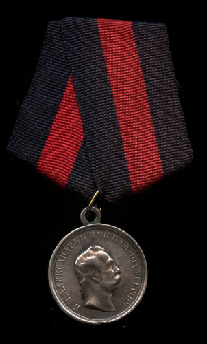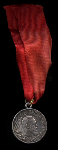 Копия медали «За спасение погибавших. Александр II». Белый металл, 28 мм, муаровая лента