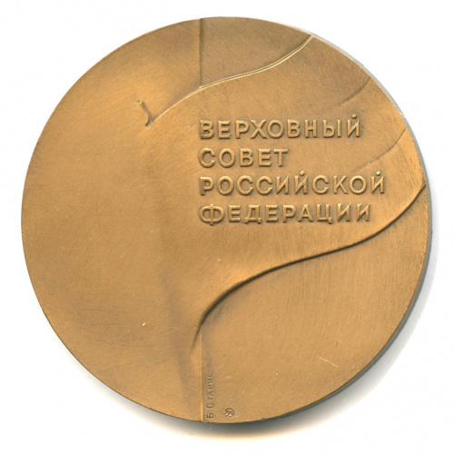 Медаль настольная «Верховный совет Российской Федерации». ⌀ 7 см. Тяжелая. ММД. Томпак. Медальер Б. Старис. Вес 231,8 г 1992 (Россия)