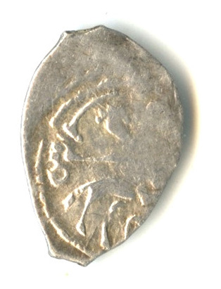 Денга. Иван III Васильевич 1462−1505. Всадник с саблей, под ним буквы «СЛ» /Трёхлепестковый цветок в окружении наименования правителя 1462-1505