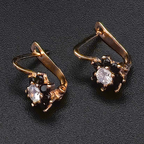 Серьги. Камни фианиты и обсидиан. Клеймо 585, МВЮС. Размер 1,7 см. Вес 1,64 гр. Состояние превосходное (Россия)
