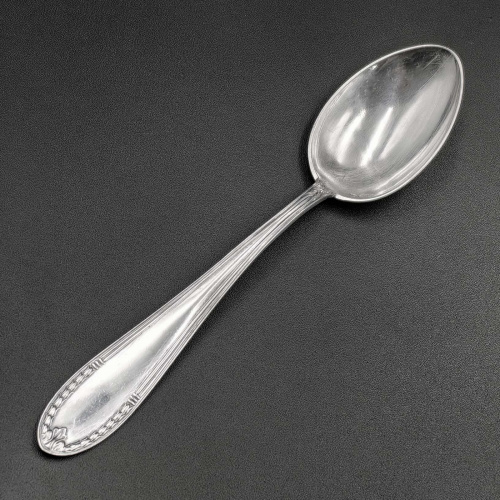 Ложка столовая. Длина 18,5 см., вес 39,7 гр. Клейма: три башни отметка пробирщика Йоханнес Зиггард, перепробировка РФ 800 голова женщины. Состояние пр…