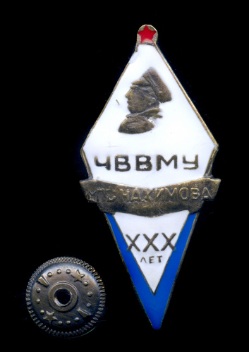 Знак «ЧВВМУ МПС Нахимова XXX лет». Крепление: винт. Тяжелый, эмаль (СССР)