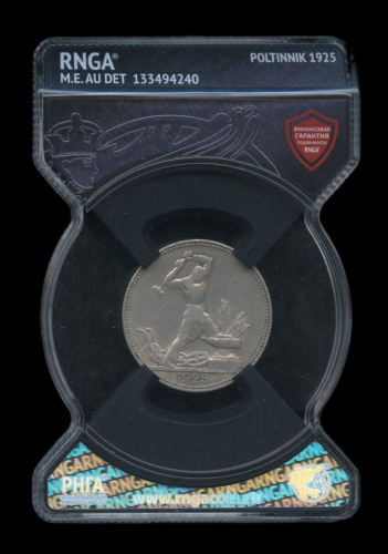 Полтинник — Молотобоец. Большая голова 1925. В слабе. Гладкий гурт. Федорин (VI)-21. Редкость (СССР)