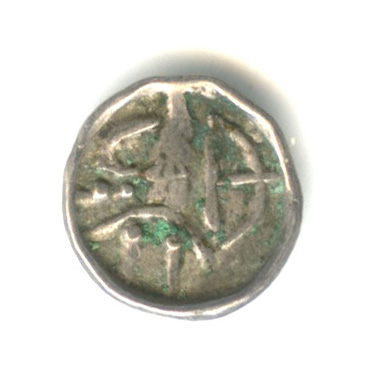 Обол 5 век. Голова влево/лучник вправо. Подражание. Согдиана. Самаркандский согд