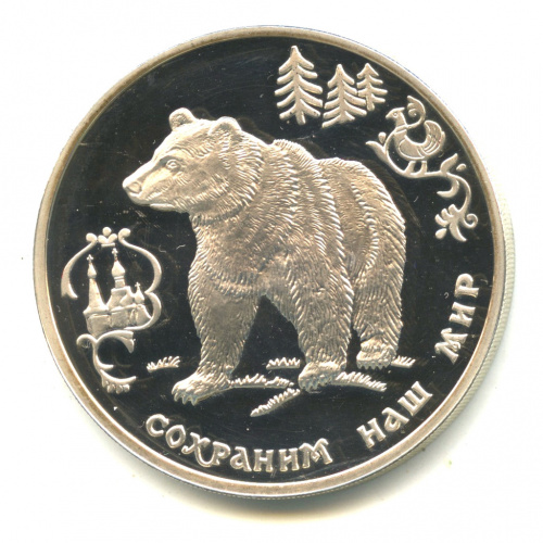 3 рубля — Бурый медведь 1993 ММД. В капсуле (Россия)