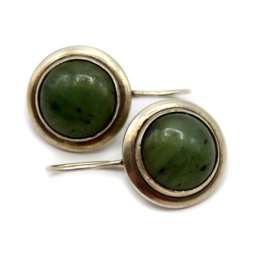 Серьги с зеленым камнем. Ag. проба 875, вес 7гр