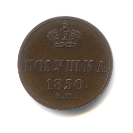 Полушка (¼ копейки) — Вензель Николая I, кабинетная патина, непростой год. 1850 ВМ (Российская Империя)