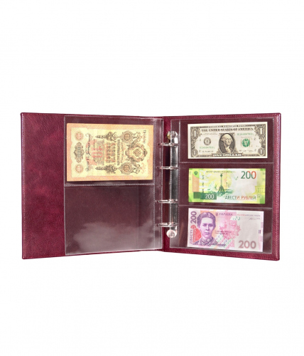 Коллекционный альбом стандарта OPTIMA, для хранения банкнот, открыток и почтовых конвертов, 15 листов на 60 позиций. Крепление: кольца. Новый в упаков…