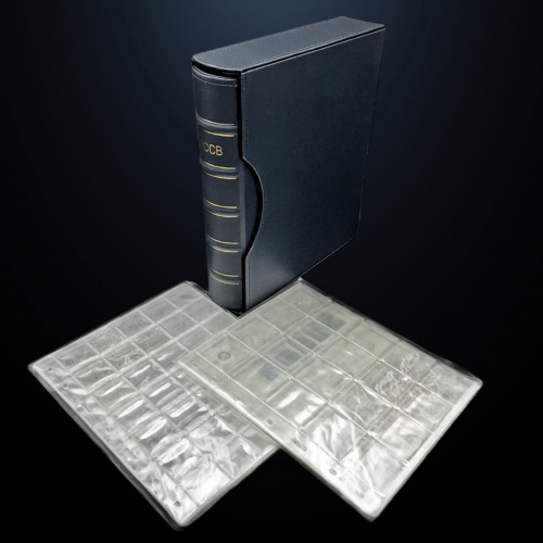 Альбом коллекционный PCCB, с комплектом 20 листов MINGT, комбинированные ячейки на 35 и 20 позиций. Размер 285×255×65 мм