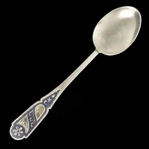 Ложка чайная. Длина 13,8 см., вес 28,9 гр. Клейма — МВЗА 925 голова женщины — Комбинат художественных изделий «Кубачи». Гравировка, чернение. Состояни…