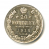 20 копеек — Орел 4 типа 1913 СПБ ВС. В капсуле