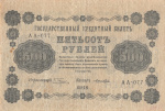 Банкнота регулярного выпуска: 500 рублей 1918 года «упр. Пятаков. Лошкин». Государственные Кредитные Билеты 1918 г. Российская Империя/РСФСР: Гражданская война (1917 — 1923).