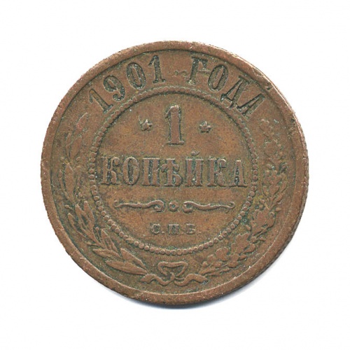 Монета регулярного выпуска «1 копейка 1901 года» 1895-1917 (Николай II) (Российская Империя) Монетный двор: Санкт-Петербургский монетный двор, Санкт-Петербург Медь