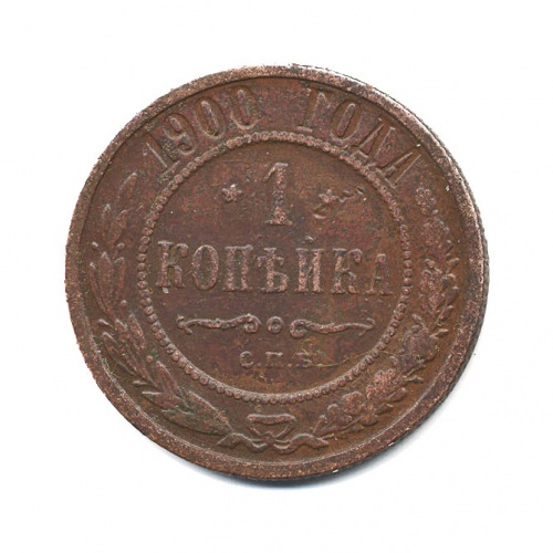 Монета регулярного выпуска «1 копейка 1900 года» 1895-1917 (Николай II) (Российская Империя) Монетный двор: Санкт-Петербургский монетный двор, Санкт-Петербург Медь