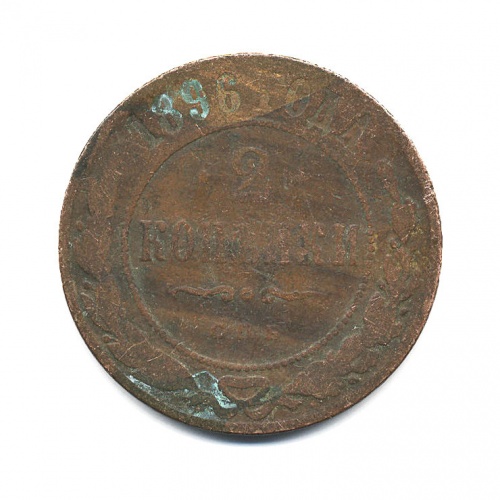 Монета регулярного выпуска «2 копейки 1896 года» 1895-1917 (Николай II) (Российская Империя) Монетный двор: Санкт-Петербургский монетный двор, Санкт-Петербург Медь