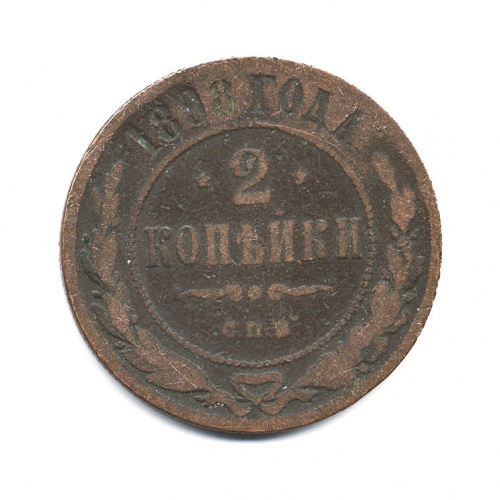 Монета регулярного выпуска «2 копейки 1898 года» 1895-1917 (Николай II) (Российская Империя) Монетный двор: Санкт-Петербургский монетный двор, Санкт-Петербург Медь