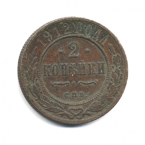 Монета регулярного выпуска «2 копейки 1912 года» 1895-1917 (Николай II) (Российская Империя) Монетный двор: Санкт-Петербургский монетный двор, Санкт-Петербург Медь