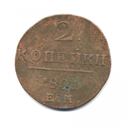 Монета регулярного выпуска «2 копейки 1801 года» 1796-1801 (Павел I) (Российская Империя) Монетный двор: Екатеринбургская монета, Екатеринбург Медь