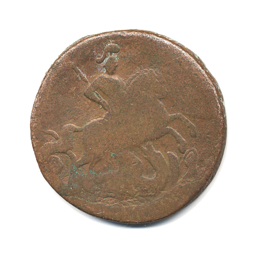 Монета регулярного выпуска «2 копейки 1757 года» 1741-1761 (Елизавета Петровна) (Российская Империя) Надпись под св. Георгием. Чеканка: Екатеринбург, Москва, Санкт-Петербург, Сестрорецк. Гурт - сетка. Медь