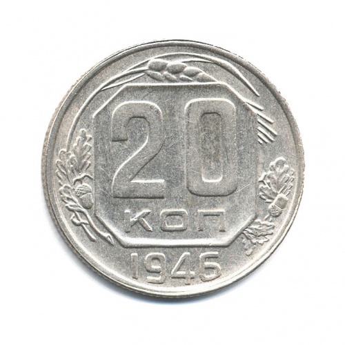 Монета регулярного выпуска «20 копеек 1945 года» Советский Союз (1924 - 1958) (СССР) Медно-никелевый сплав