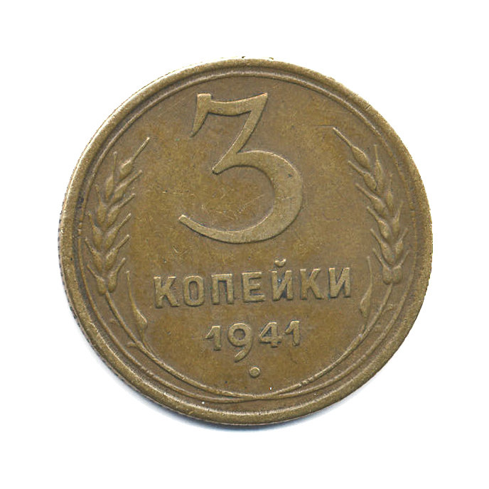Монета регулярного выпуска «3 копейки 1941 года» Советский Союз (1924 - 1958) (СССР) Алюминиевая бронза