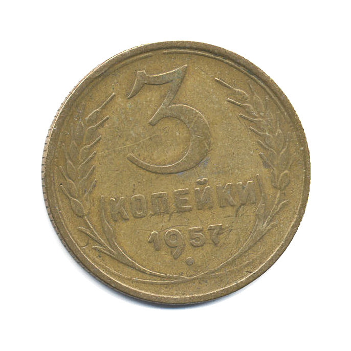 Монета регулярного выпуска «3 копейки 1957 года» Советский Союз (1924 - 1958) (СССР) Алюминиевая бронза