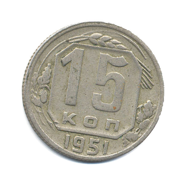 Монета регулярного выпуска «15 копеек 1951 года» Советский Союз (1924 - 1958) (СССР) Медно-никелевый сплав