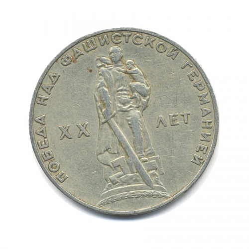 Юбилейная монета «1 рубль 1965 года „XX лет победы над фашистской Германией“» Советский Союз (1961 - 1991) (СССР) Медь-Никель-Цинк