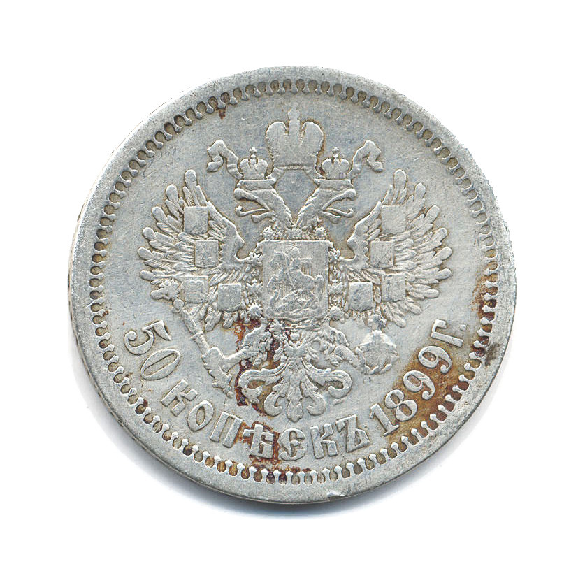 Монета регулярного выпуска «50 копеек 1899 года» 1895-1917 (Николай II) (Российская Империя) Минцмейтер: Аполлон ГРАСГОФ Ag 900/Niob 998