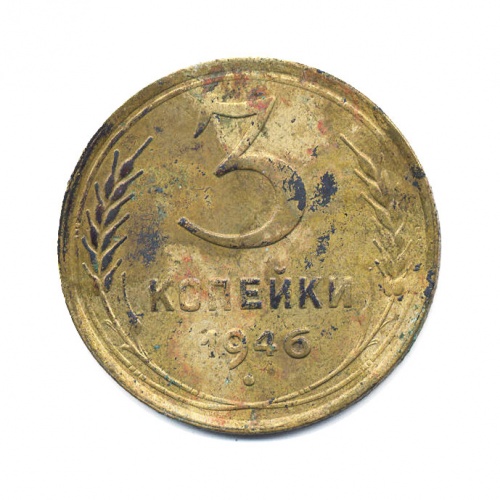 Монета регулярного выпуска «3 копейки 1946 года» Советский Союз (1924 - 1958) (СССР) Алюминиевая бронза