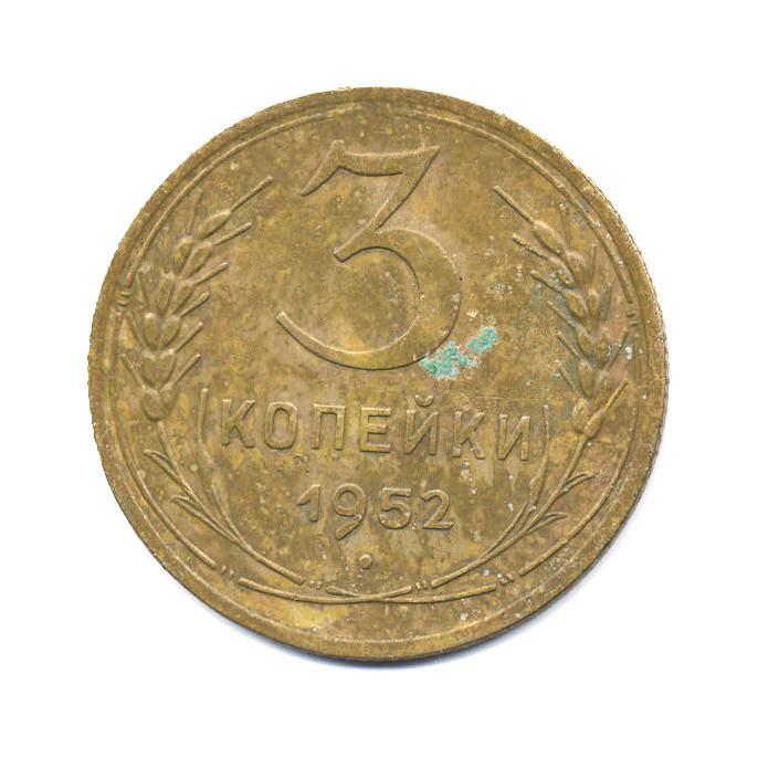 Монета регулярного выпуска «3 копейки 1952 года» Советский Союз (1924 - 1958) (СССР) Алюминиевая бронза