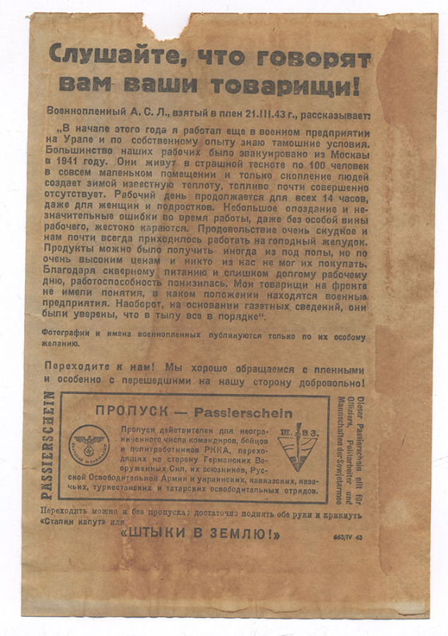 Агитационная листовка, 4-й Украинский фронт, 1943 год