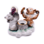 Чернильница «Медвежата», скульптор Е.И. Чарушин, фарфор, роспись, Ленинградский фарфоровый завод (ЛФЗ), СССР, 1970−1986 гг. Размер 16×13 см. Дефекты: склейка одного уха, без крышки от бочки. Без клейма