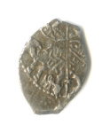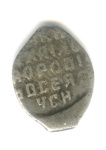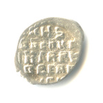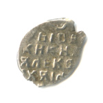Деньга московская, Иван третий. Цветок, на обороте 3 розетки, круговые надписи Русское царство»»