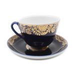 Чайная пара: блюдце 14,3 см и чашка 6,8×9,3 см. Фарфор, позолота, кобальт. Клеймо ЛФЗ 2С СССР»»