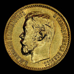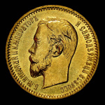 5 рублей — Портрет Николая II 1903 АР. Штемпельный блеск. Отобранный коллекционный экземпляр