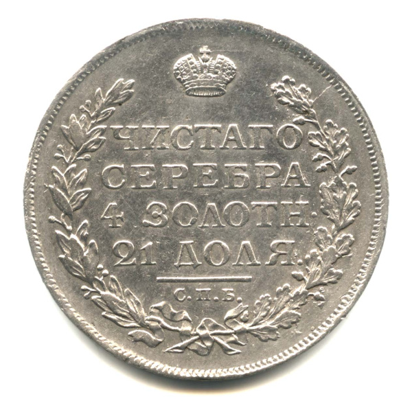 1 рубль — Конец скипетра доходит до буквы О 1813 CПБ ПС (Российская Империя)