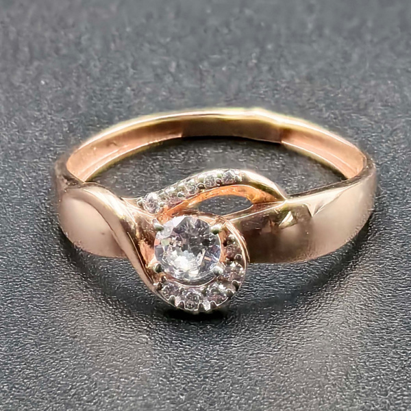 Кольцо. Камни — фианиты. Клеймо 585 голова женщины, СЛН. Размер 17. Вес 2,41 гр. Состояние превосходное 2016 (Россия)