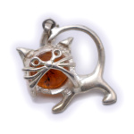 Кулон «Кошка». Посеребрение, янтарь. 2,33 г