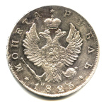Монета регулярного выпуска: 1 рубль 1823 года «Хвост растрепан, немного вытянут». 1 рубль 1810 — 1826 гг. Российская Империя: Александр I (1801 — 1825). Монетный двор: Санкт-Петербургский монетный двор, г. Санкт-Петербург. Минцмейстер: Павел Фёдорович Данилов (1820−1838). Серебро 868, 21 г, ø 36 мм, Гурт: Надпись. Тираж: 2955000 шт.