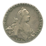 1 рубль — Портрет Екатерины II. Без шарфа на шее (Петербургский тип) 1766 СПБ ТI АШ